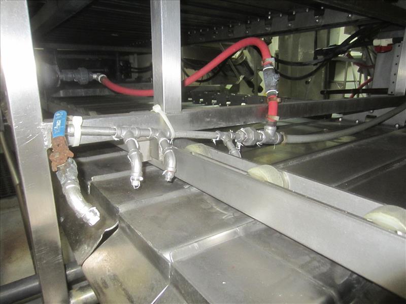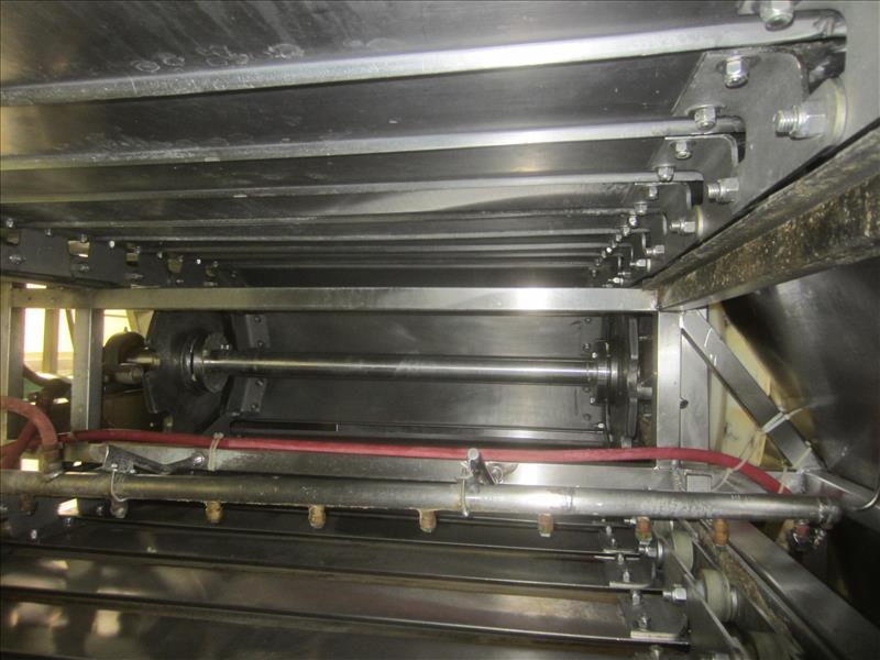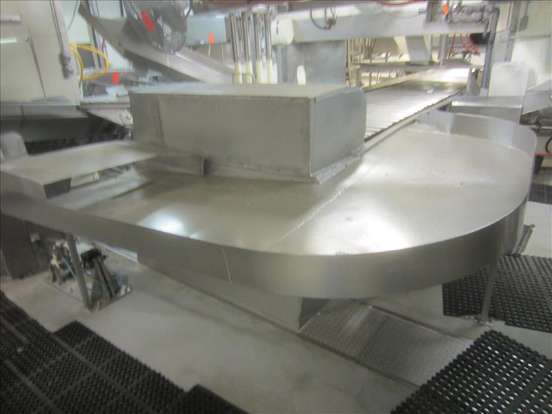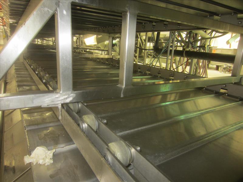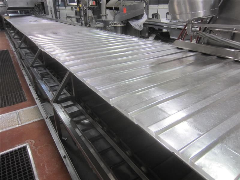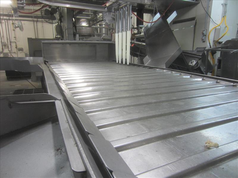 S.S. Slat Evisceration Table, 55" W X 77' L s.s. belt w/3' W s.s. chute at end