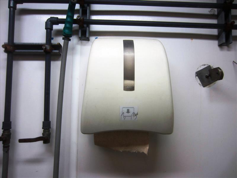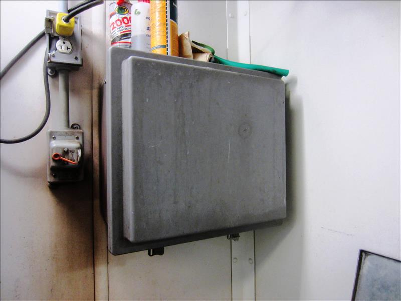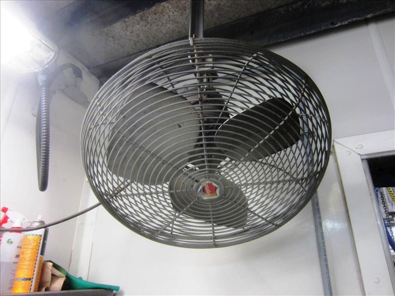 Contents of Room: S.S. Cabinet on wall, (2) Fiberglass Cabinets on wall, (1) S.S. Work Platform, (1) 24" Dayton Fan, (1) Towel Dispenser