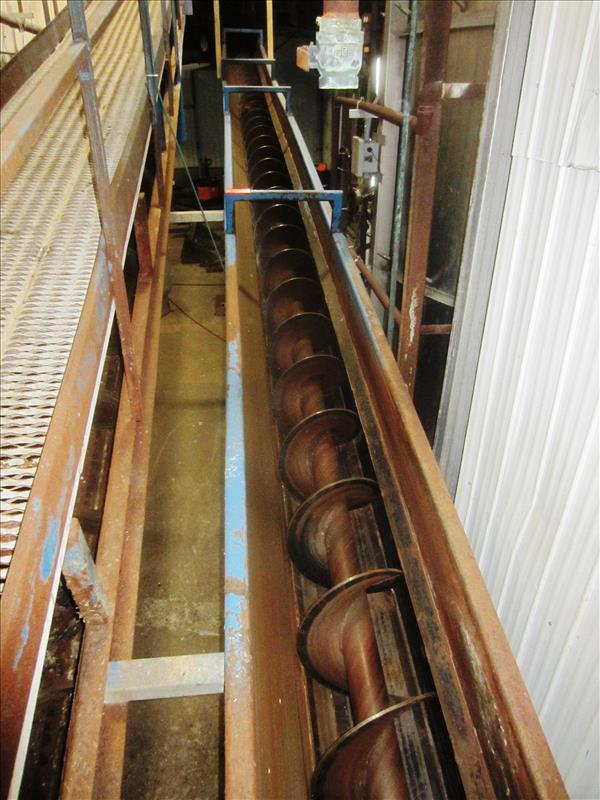 (1) Screw Auger, mild steel, 16" Dia. X 100' L in trough, (1) Discharge Auger w/electric drive