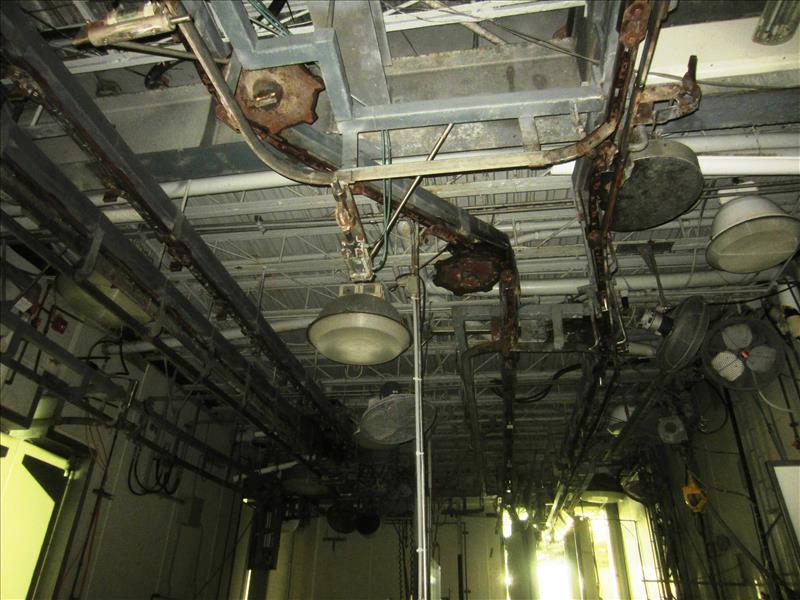 Overhead Rail Chain approx. 300' long w/drive sprockets & rail