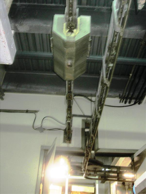 Overhead Rail Chain approx. 400' long w/drive, sprockets & rail