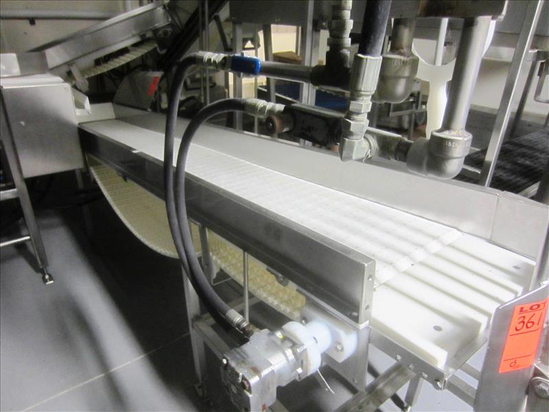 S.S. Incline Conveyor, 18" W X 10' L intralox belt, hydraulic operation, 5" s.s. sides