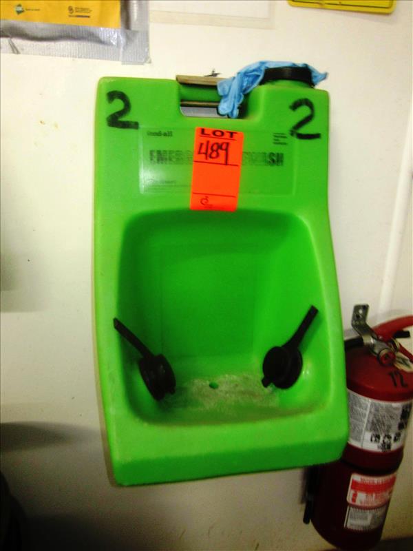 (1) Rubbermaid Plastic Cabinet, (1) Eye Wash Station