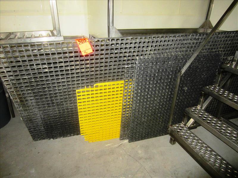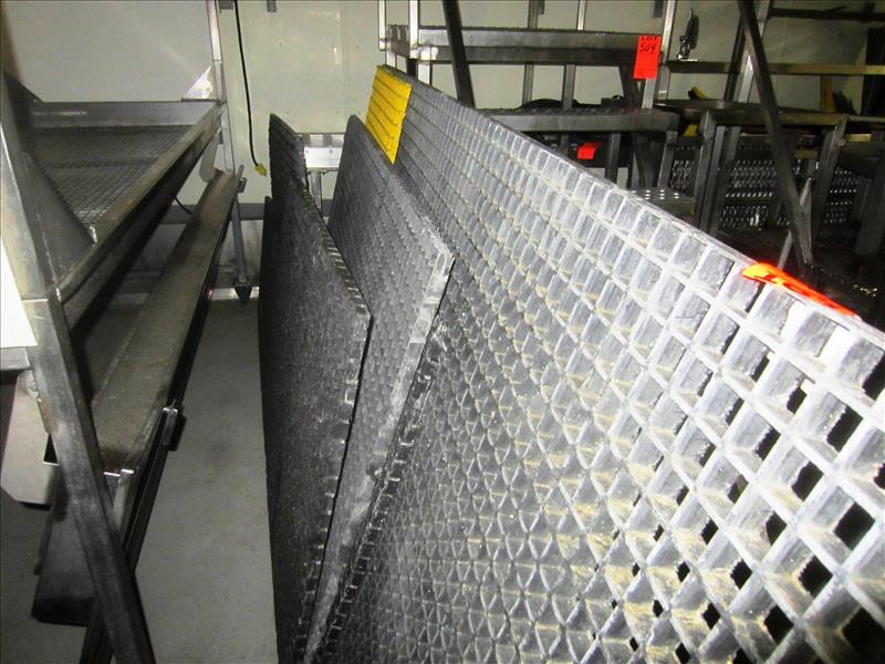 Misc. S.S. Work Platforms, S.S. Tote Racks, S.S. Table Frame, (1) Roller Conveyor 20" W X 15' L, (9) Misc. Pieces Chemgrate Flooring