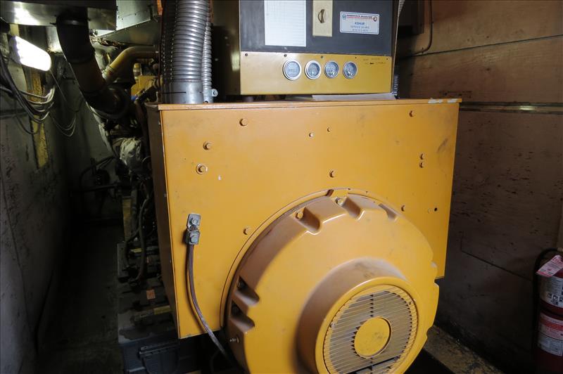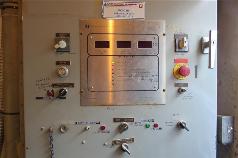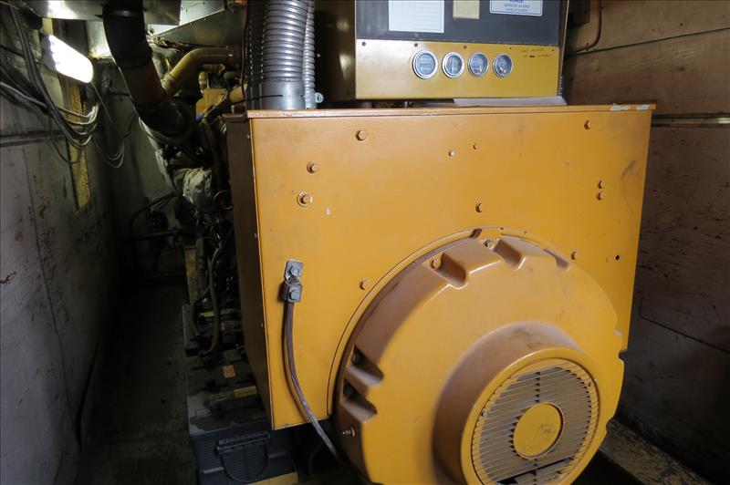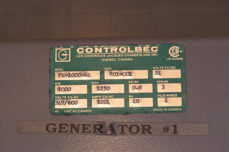 Leroy Somer Mdl. LSA-50 M6 Diesel Generator, Ser. #161273-4, capacity 1400 KVA, mfg. 1997, approx. 7874 hours, in an anti-vibration base includes "Controlbec" Mdl. TA-1000-6A, Ser. #S01-001, 100 KW, 1250 KVA, 24 volts, 3 phase, 1204 amps, plus (2) exterior gas tanks