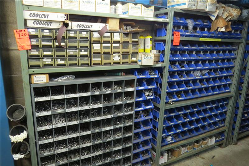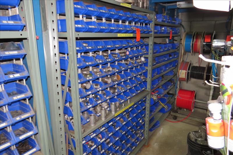 (6) Parts Bins, Nuts, Bolts, Screws, Parts Bins, Tees, Couplings, Unions, Nipples, etc.