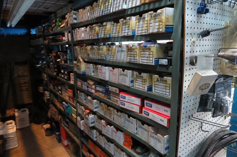 8 Sections Racking w/contents, bearings, couplings, gears, housing, etc.