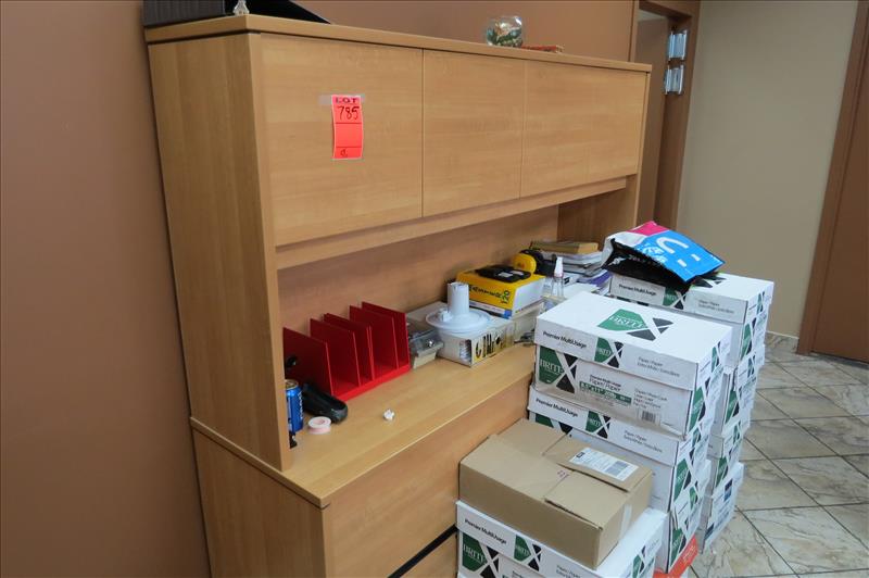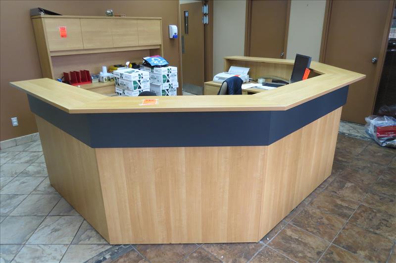 Semicircle Receptionist Desk, Wall Cabinet & (2) Office Chairs