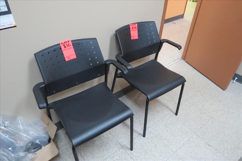 Office Desk, Vertical Filing Cabinet 4-drawer, (2) Plastic Chairs, (1) Leather Chair & HP Photo smart D7460