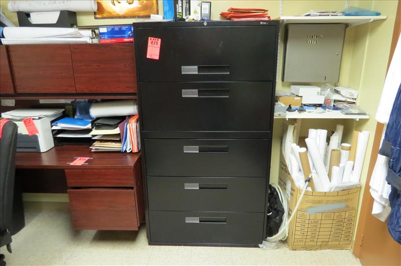 Desk & Wall Unit & Horizontal 5-Drawer Filing Cabinet