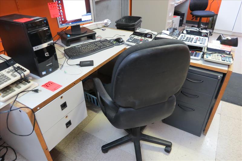(3) Office Desks, (3) Chairs & (1) 3-Drawer Vertical Filing Cabinet