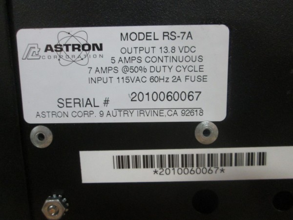 Lots 1902 - 1906 ASTRON 12V POWER SUPPLY RS7A ID#: AC064, AC065 (LOCATED IN BROCKVILLE, ON)