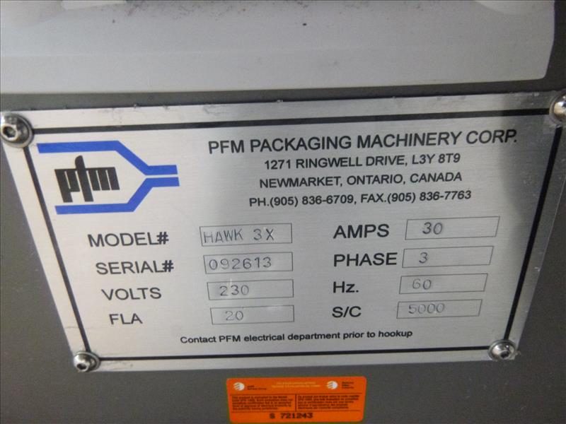 PFM Flow Wrapper mod. HAWK 3X ser. no. 092613 w/ Markem Coder mod. 9840 c/w spare parts, tools & manuals