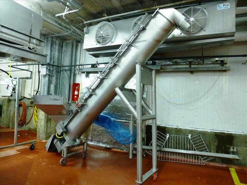 (Formulation) s/s inclined screw conveyor on casters approx. 12 in. Diam. x 10 ft. L. c/w hinged covers & feed hopper