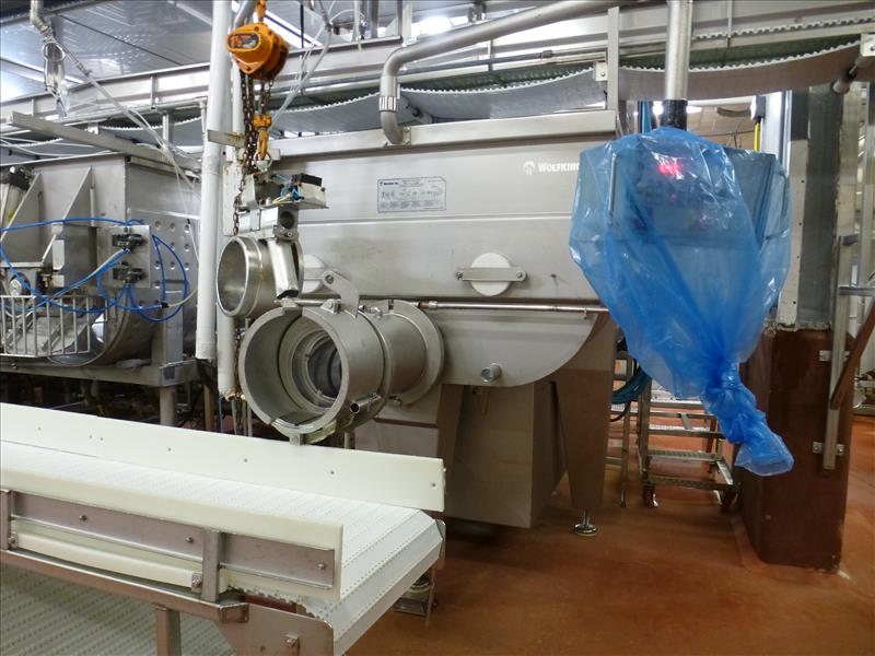 (Formulation) Wolfking dual-shaft paddle mixer/grinder model TSMG-1250/250 ser. no. 58593 c/w: grinding head at discharge & 1-1/2 ton manual chain hoist