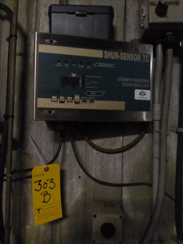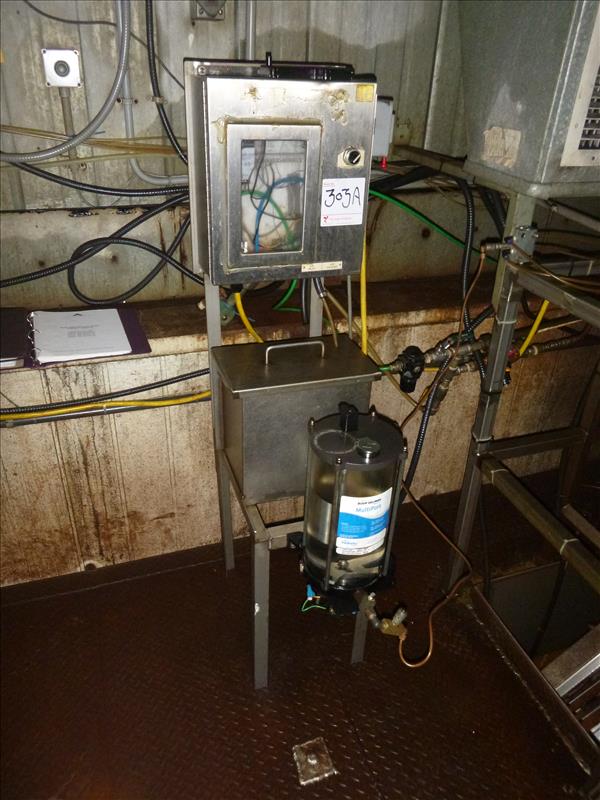 (Ham Loaf Line) Acumen conveyor chain lubrication system for Loaf Line c/w Series 2000 6-nozzle 4-zone lube system (303A) & Shur-Sensor TC computerized controller (303B)