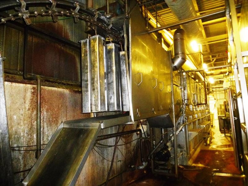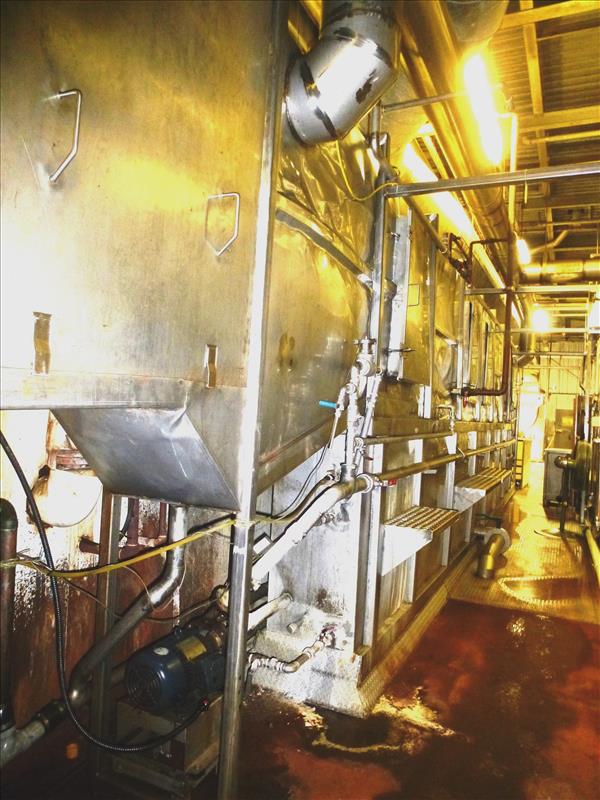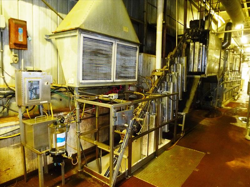 (Ham Loaf Line) KSI s/s loaf mould washer approx. 24 in. W. x 40 ft. L. x 9 ft. H; c/w pump & piping etc.