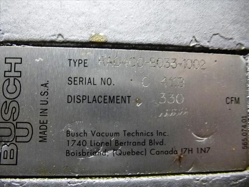 20 hp. Busch vacuum pump model RA0400-B033-1002 ser. no. C-4119