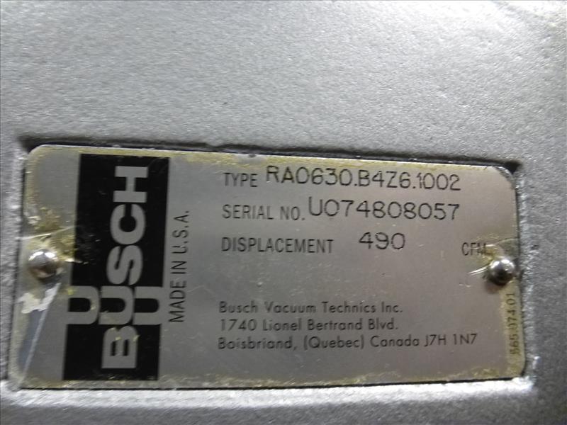25 hp. Busch vacuum pump model RA0630.B4Z6.1002 ser. no. U074808057