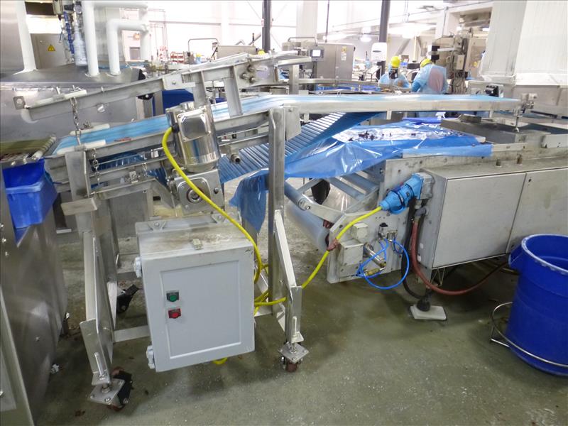 (Slice/Pack Line 7) s/s frame slicer discharge conveyor on casters c/w 14 in. W. x 10 ft. L. blue plastic belt