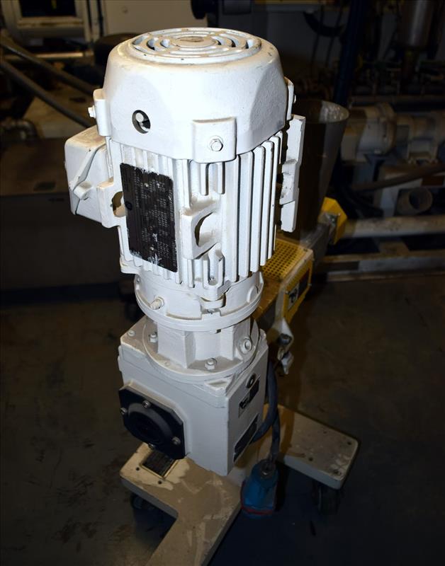 Coperion ZSB-25 Twin Screw Side Feeder. Driven by a 3/4hp, 3/60/230/460 volt 1750 rpm motor with a reducer. Mounted on a stand with casters. Work# 06180034, ID# 717704, ID# 03-3167-1102-100, built 2003. Last used with a 25mm twin screw extruder.