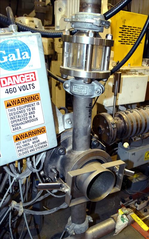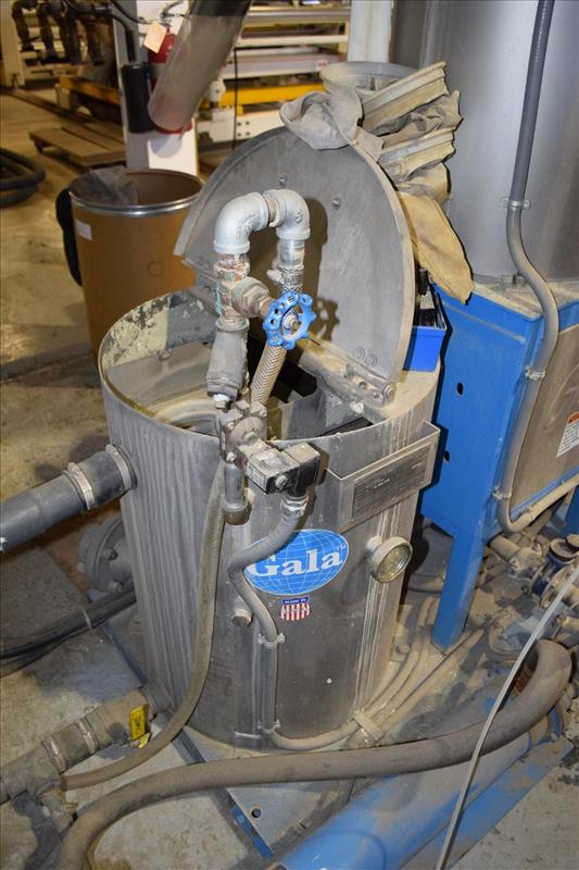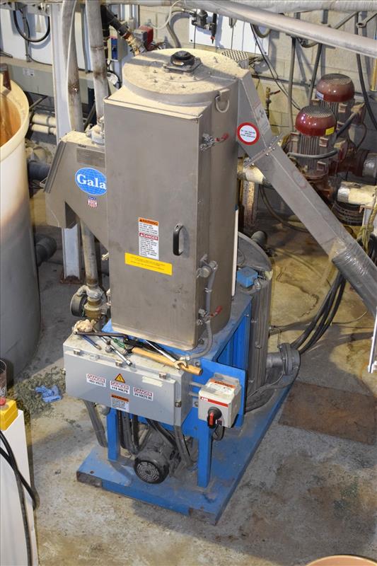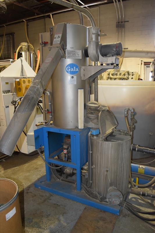 Gala?Underwater Pelletizing System Consisting Of: (1) Gala cutting head, model SLC-6, with blades, and stand, driven by a 4kw, 3/60/230/460 volt, 3450 rpm motor. (1) Gala cutting chamber, (1) Gala spin dryer, model 2008-BF, driven by a 5hp motor, with a side mounted blower, (1) Gala agglomerate catcher, model 8.2/SG, (1) Gala 40 GPM-TWS water system with tank, pump, and heat exchanger. (1) Allen-Bradley PanelView 1000, and (1) Gala control panel with Allen-Bradley Micro Logix 1500. Serial# 10201661. ??