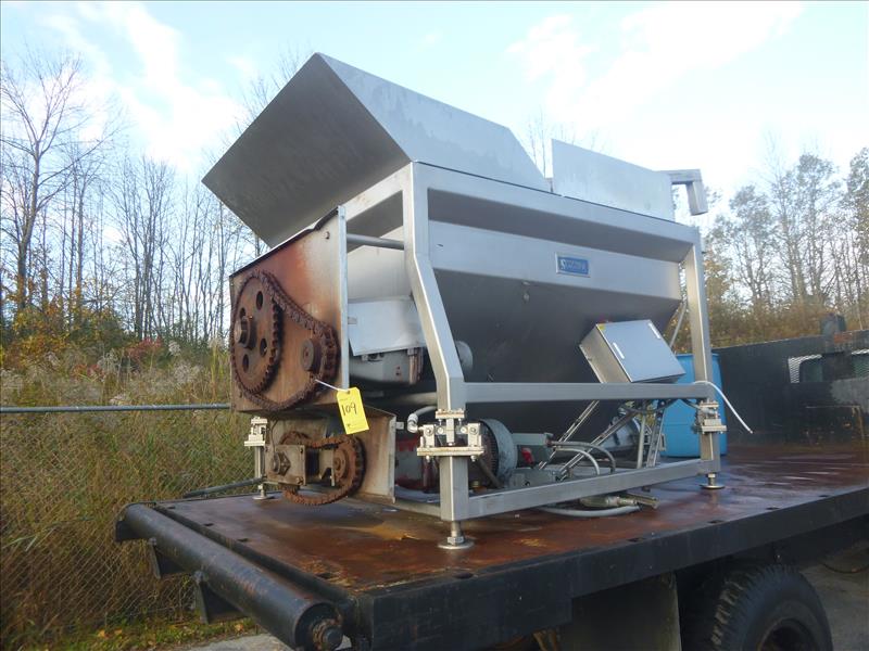 Cozzini SS Feed Hopper, mod. CSI-400-PA, ser. no. P2209-02-00806 w/ mixer, bottom auger, load cells, digital scale & outfeed pump, approx. 10' x 5' c/w Cozzini holder