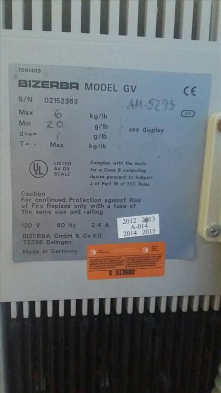 Bizerba Checkweight top Labeller blowdown, Model GV, S/N 02152363