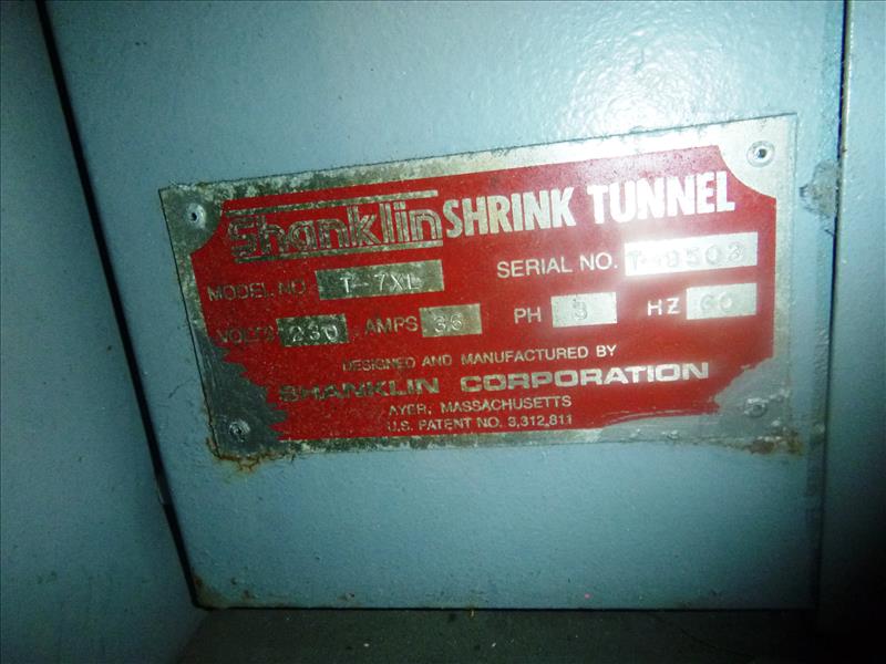 Shanklin Cryovac Shrink Tunnel, mod. T7-XL, ser. no. T-8503, 22" x 8"H aperture, 15" x 8' conveyor
