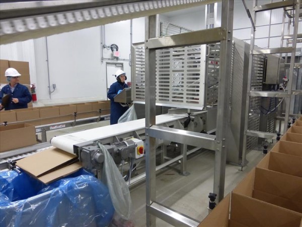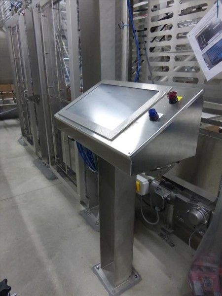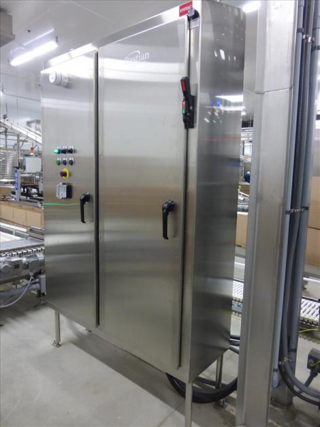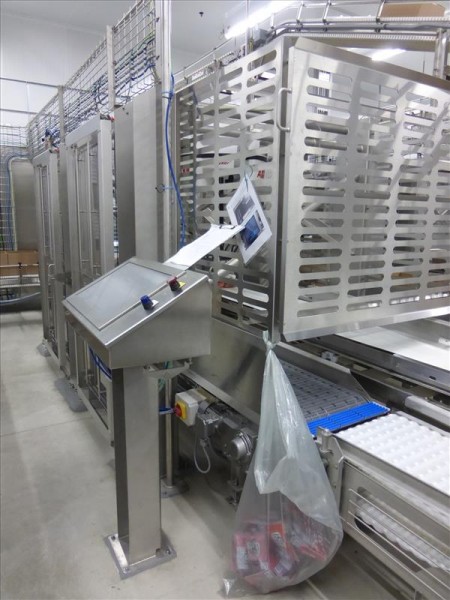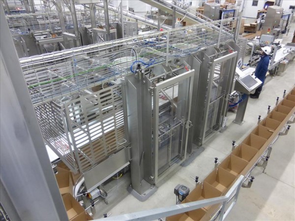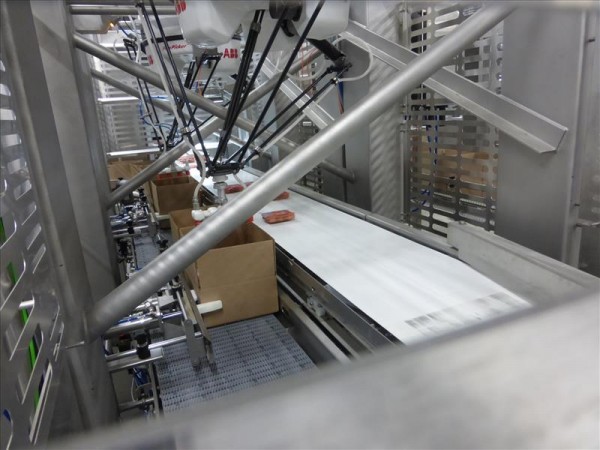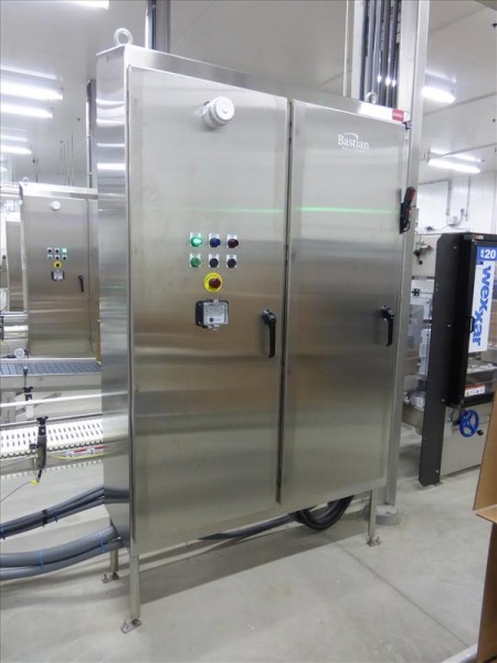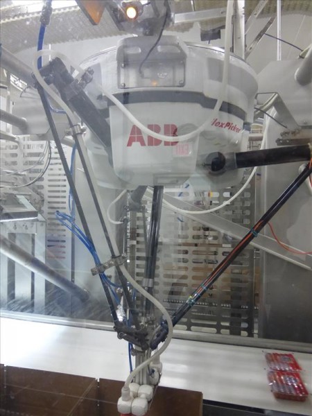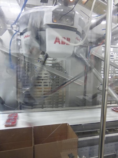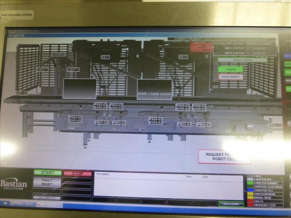 (3) Bastian Robotics robotic case packing lines, installed in 2013, comes with: (2) ABB FlexPicker parallel-type robots, model IRB-360, 3 kg. cap., c/w controllers, mounting stands, and Bastian Robotics end of arm tooling; s/s frame empty case packing indexing conveyor, c/w gray plastic roller belt, & pneum. case positioners, approx. 18" W. x 162" L.; s/s frame product packing conveyor, c/w white urethane flat belt, approx. 18" W. x 24' L.; ABB vision guidance camera system, model PickMaster-3; s/s frame full case outfeed conveyor, c/w white plastic roller belt, approx. 18" W. x 8' L.; s/s safety cell enclosure, c/w sliding doors; system component controls, HMI terminals, monitors, motor control panels, electrical switchgear, cabling, and software, etc., required for system operation, as supplied by Bastian Robotics.