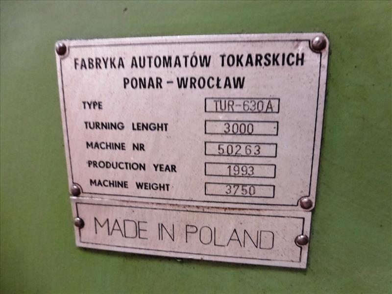FAT (Fabryka Automatow Tokarskich) heavy-duty manual lathe, mod. TUR-630A, ser. no. 50263 15 to 1400 rpm., 3000 mm. turning length