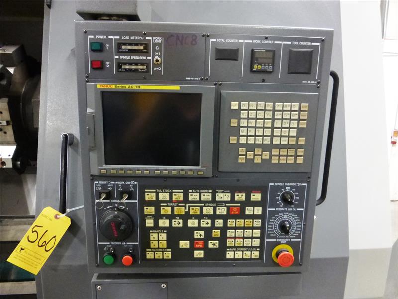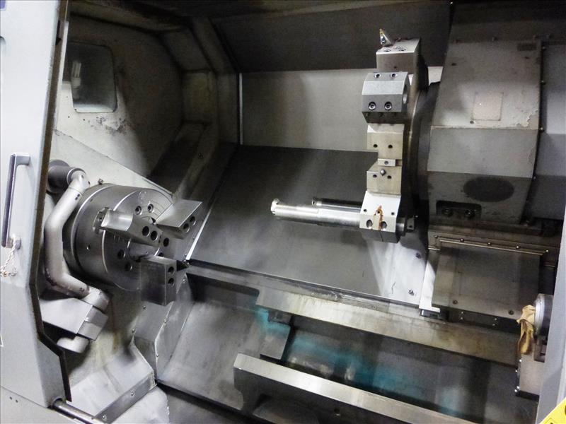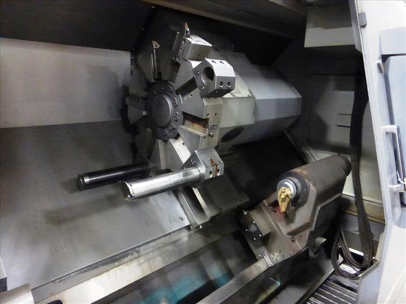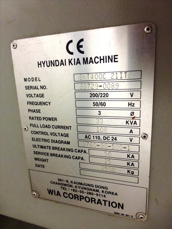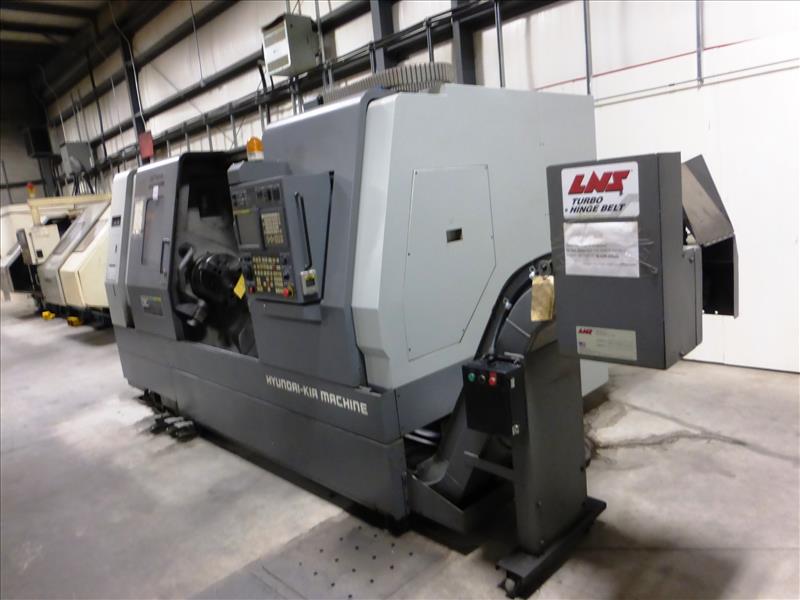 Hyundai-Kia mod. SKT400C 21ITB, CNC turning center, ser. no. G3729-0089, Fanuc Series 21i-TB control, 3-jaw chuck, 10-position tool turret, tailstock, LNS Turbo Hinge Belt chip conveyor, (CNC-8) Operating Time: 5,799 hours