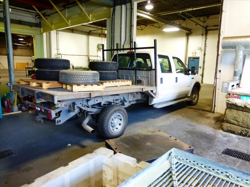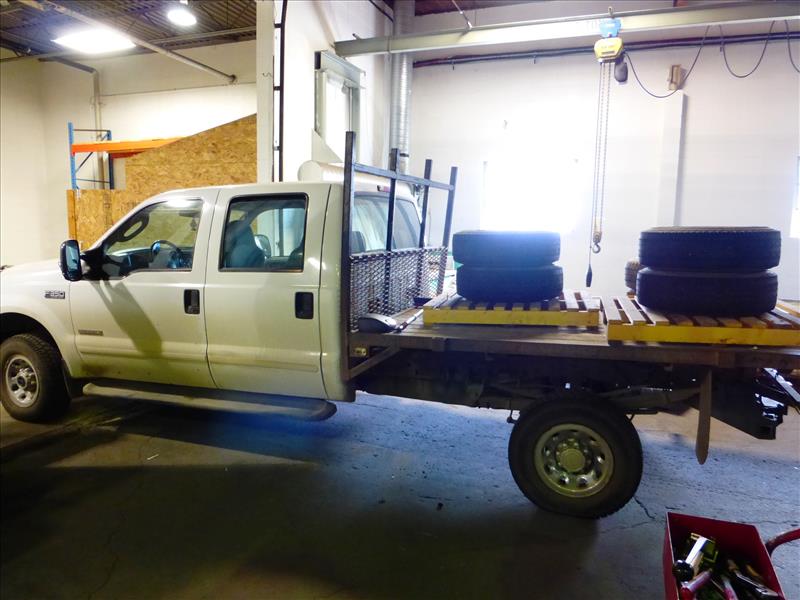 2004 Ford flat-bed truck, mod. F350XLT Super Duty, VIN 1FTSW31PX4EA77455, Power Stroke V8 Turbo diesel, approx. 200,000 kms., 4-door crew cab c/w summer & winter tires on rims (requires oil pump)