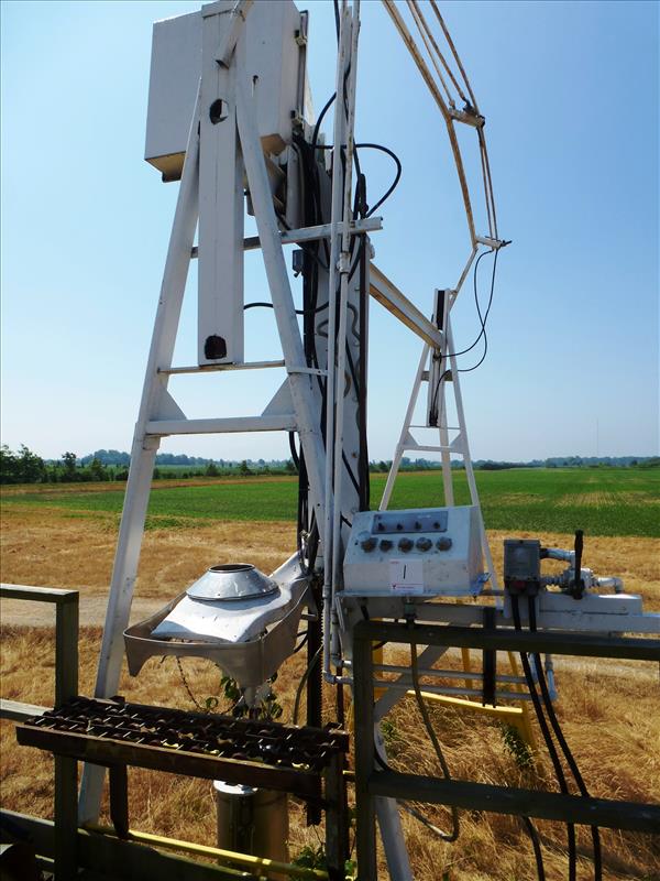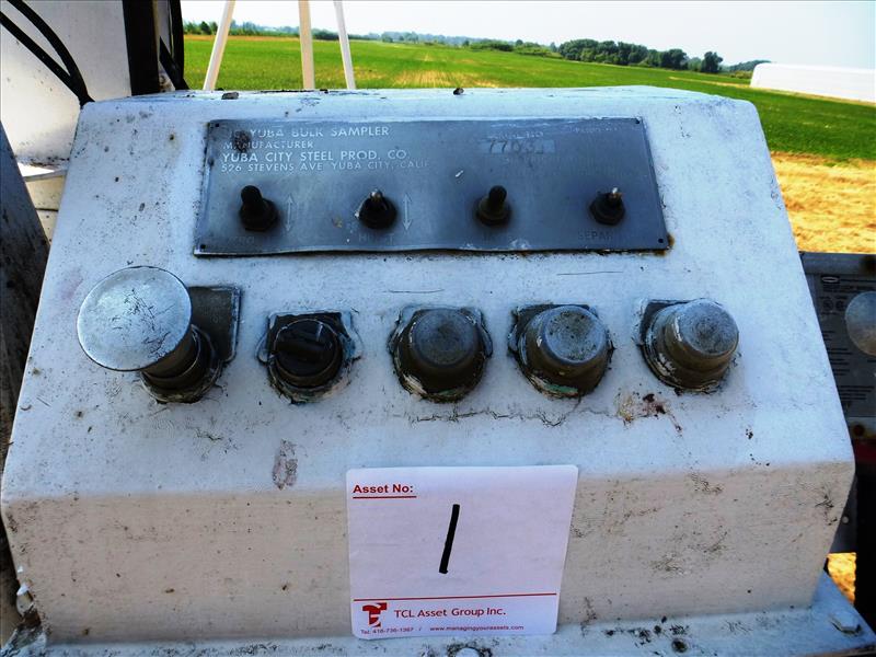 Yuba City hydraulic tomato bulk sampler, mod. U.C. Yuba, ser. no. 7703 c/w stand & Farm Duty 3 h.p. hydraulic power pack