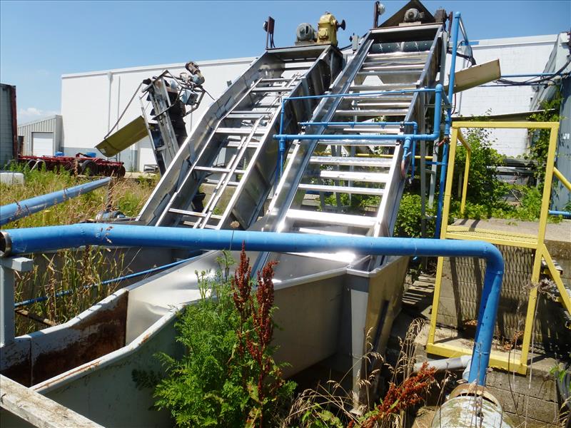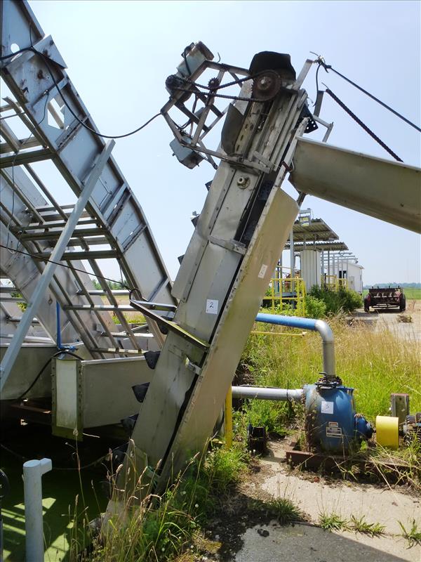 (2) s/s inclined belt conveyors & (1) s/s bucket elevator & s/s chutes