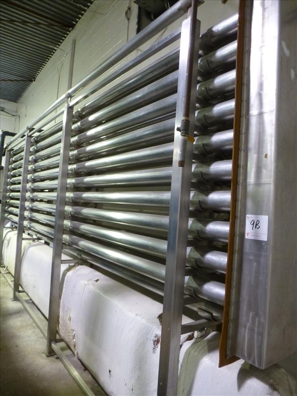 Esco Engineering designed, custom-built s/s aseptic tube-in-tube sterilization-cooler, approx. 4" outer tube, 2" inner tube, 20' long, approx. 1,000' continuous pipe c/w ABB Commander 1900 chart recorder & controller (specs. not verified). THE INDIVIDUAL BID WILL BE OFFERED CONDITIONAL SUBJECT TO THE BULK BID LOT & AWARDED SOLD INDIVIDUAL OR BULK WITHIN 24 HOURS OF AUCTION CLOSE.