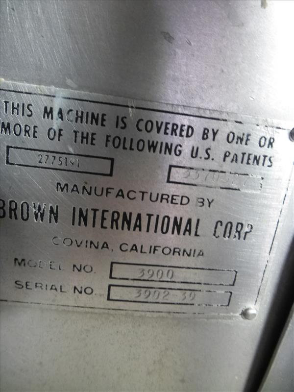 Brown International s/s finisher, paddle format, mod. 3900, ser. no. 3902-39, 15 h.p. c/w (1) cover guard & set of (2) backing screens