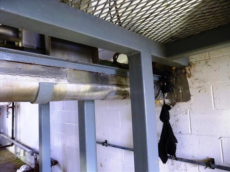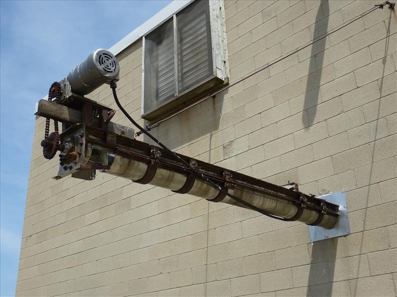 s/s screw conveyor. REQUIRED REPAIRS TO WALL ARE THE RESPONSIBILITY OF THE BUYER. PLEASE HAVE YOUR MACHINERY MOVER INCLUDE THESE REPAIRS IN THIER QUOTE