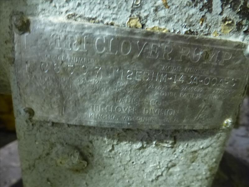 Tri-Clover s/s centrifugal pump, mod. 12EBHM-143A-00A-S, ser. no. 08597, 7.5 h.p.