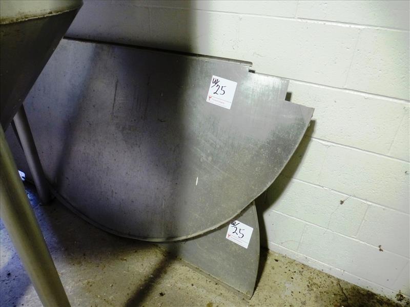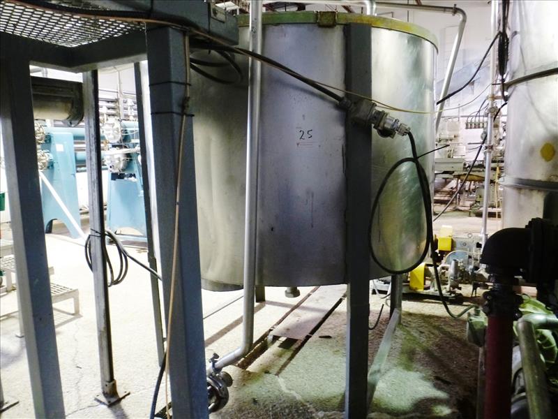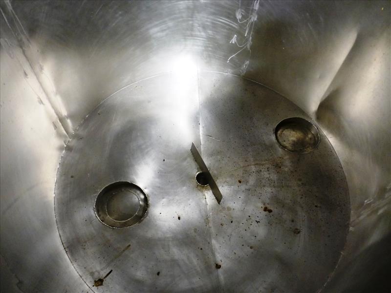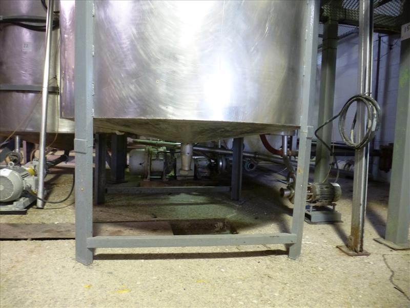 s/s open top holding tank, approx. 70" diam. x 48" high straight side c/w loose s/s lid & steel support stand