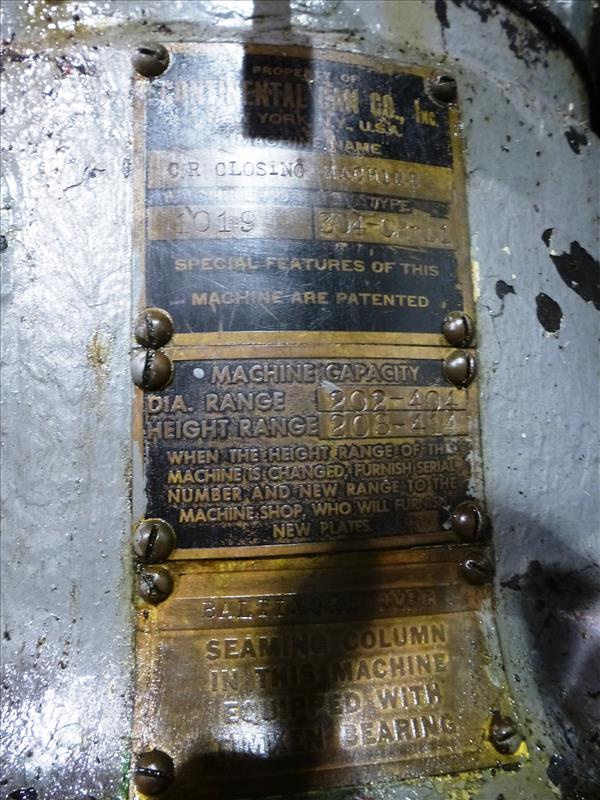 Continental Can Co. 4-spindle CR Closing Machine, type 304-CR-B1, ser. no. 1019, diam. range 202 - 404, height range 208 - 414