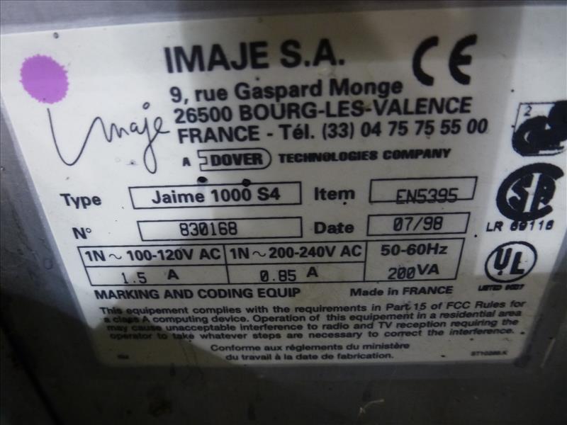 Imaje inkjet coder, mod. Jaime 1000 S4, ser. no. 830168