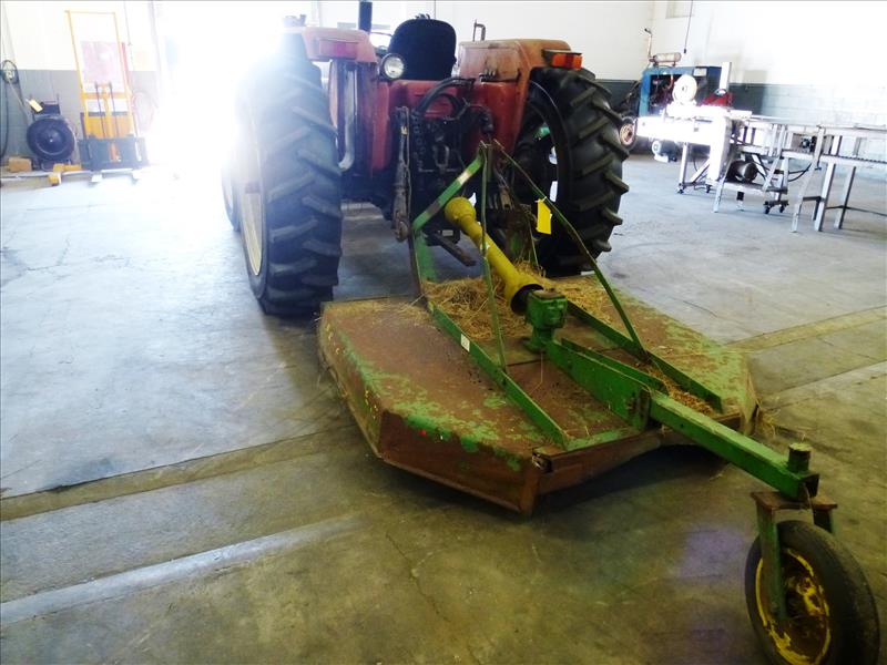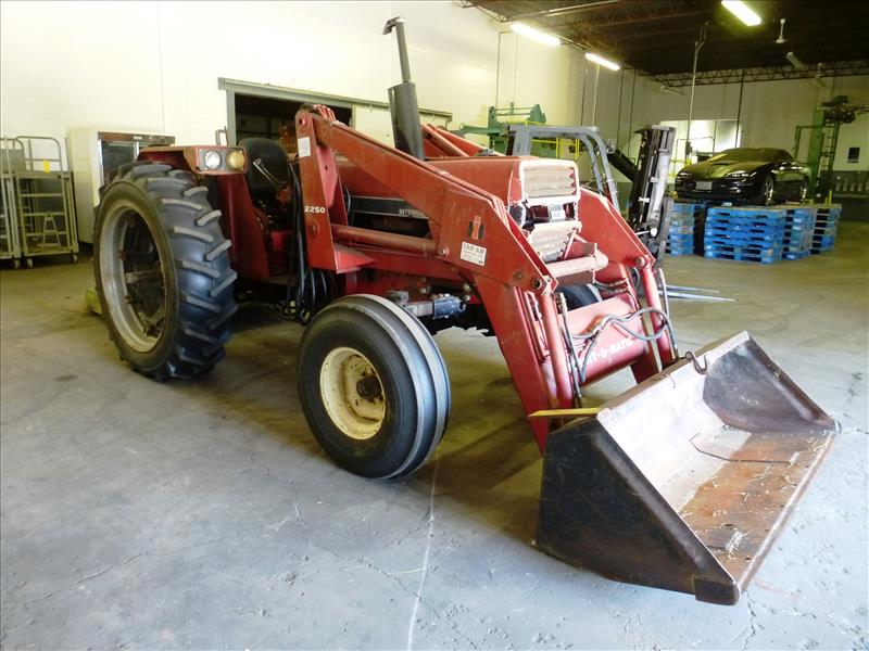 Case International diesel tractor, mod. 685, ser. no. 1860 16 0617 c/w Mount-O-Matic 2250 bucket, PTO & John Deere rotary mower, mod. 513