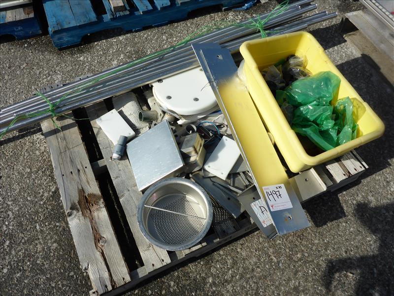 (10) skids of assorted contents including s/s strainer baskets, s/s cabinets, s/s stands, s/s tubing etc., etc. (Tag No. 1497)