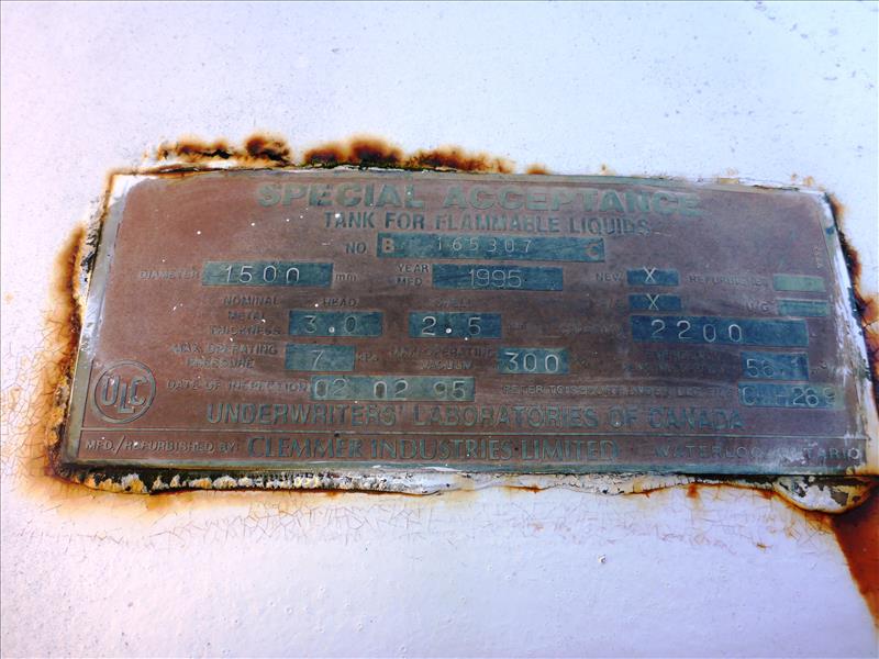 Clemmer steel waste oil tank, 1500 mm. dia., s.n.. B165307, (1995) (Tag No. 1033)