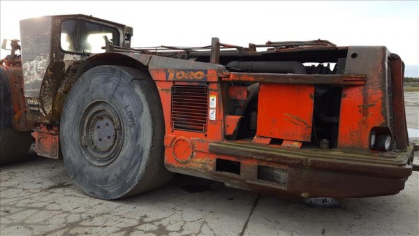 Sandvik Toro 0010 load haul dump (LHD) truck (2008) 7.0m3 bucket Engine: Detroit Diesel Transmission: Dana Axles: Dana 53R Torque: Dana Cabin: ROPS/FOPS, AC Remote Control: HBC Fire Suppression: Ansul Component Hours Operating Hours: 22800 Date of Last Rebuild: 29/3/2012 Hours of Last Rebuild: 13688 Any Main components fitted since last rebuild (Last recorded fitment at hours): Engine: 5722 Bucket: 22240 Rear diff: 21370 Shipping Details (Provided for information only from equipment specification documents and should not be soley relied upon) Gross Weight kg: 42000 Axle Load 1 kg: 18270 Axle Load 2 kg: 22730 Width mm: 3000 height Roof down mm: 2750 Height Roof up mm: 2750 Length mm: 11120 One flat tyre which can be pumped sufficient to transport