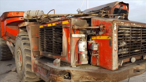 Sandvik Toro 50D underground dump truck (2006) 22m3 bed (ore box) Cabin: ROPS/FOPS, AC Fire Suppression: Ansul Extras: Drive Line Retarder Torque Converter Lock Up Posi-Stop Braking System Component Hours Operating Hours: 23276 Date of Last Rebuild: 24/9/2011 Machine Rebuilt in 2011 at 12935 hours Shipping Details (Provided for information only from equipment specification documents and should not be soley relied upon) Gross Weight kg: 32500 Axle Load 1 kg: 23200 Axle Load 2 kg: 9300 Width mm: 3220 height Roof down mm: 2720 Height Roof up mm: 2720 Length mm: 10220