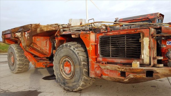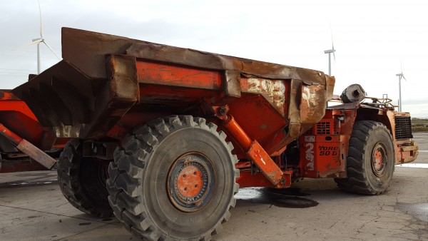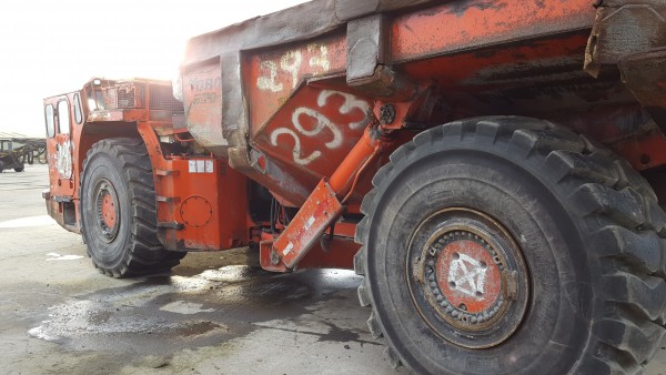 Sandvik Toro 50D underground dump truck (2007) 22m3 bed (ore box) Engine: Detroit Diesel Transmission: Dana Axles: Dana Torque: Dana Cabin: ROPS/FOPS, AC Remote Control: Fire Suppression: Ansul Extras: Drive Line Retarder Torque Converter Lock Up Posi-Stop Braking System Component Hours Operating Hours: 21909 Date of Last Rebuild: 28/3/2012 Hours of Last Rebuild: 13366 Any Main components fitted since last rebuild (Last recorded fitment at hours): Engine: 21134 LH Dump cyl: 21313 RH Dump cy:l 21313 Ore box: 669 Transmission: 20864 Shipping Details (Provided for information only from equipment specification documents and should not be soley relied upon) Gross Weight kg: 32500 Axle Load 1 kg: 23200 Axle Load 2 kg: 9300 Width mm: 3220 height Roof down mm: 2720 Height Roof up mm: 2720 Length mm: 10220