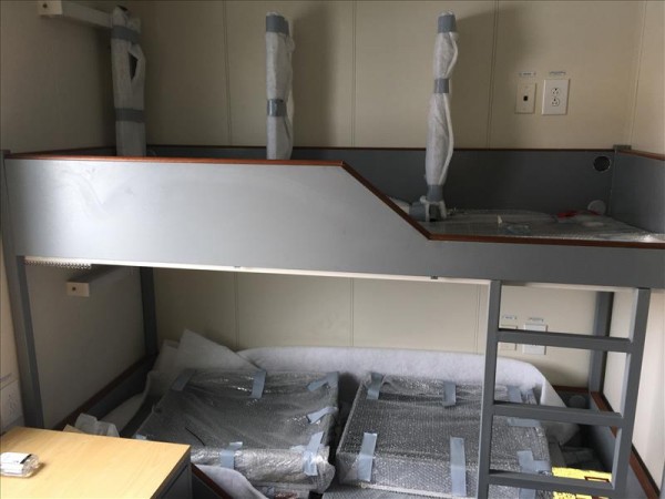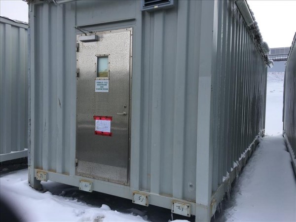 Building, Temporary Living Quarters, Portable, 57-Person, (Qty 10 Modules, 33.96ft/10.35m Long), (9) Sleeper Modules, 6-Person, w/(2) Sleeping Compartments & (2) Ensuite Bathrooms, & (1) Sleeper Module, 3-Person, w/(1) Sleeping Compartment & (1) Ensuite Office & Bathroom, USED. Building, Lunchroom & Changing Facility, Portable, 122-Person, (Qty 8 Modules, 33.96ft/10.35m Long), (5) Lunchroom Modules, (1) Male Changing Room Module, w/(70) Lockers, Triple Tier Lockers, & Bench Seating, (1) Male Washroom Module, w/(4) WC Stalls, Urinal Trough, & (6) Wash Hand Basins, & (1) Female Changing Room/Washroom Module, w/(30) Lockers, (3) WC Stalls, (4) Wash Hand Basins, Triple Tier Lockers, & Bench Seating, USED