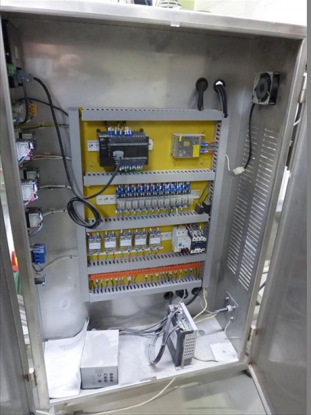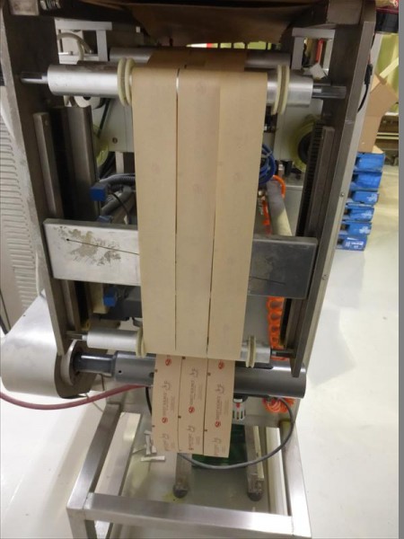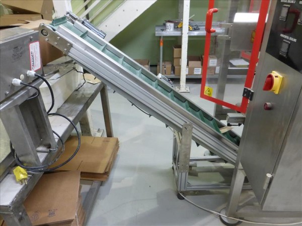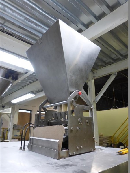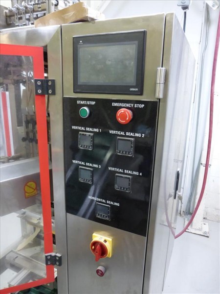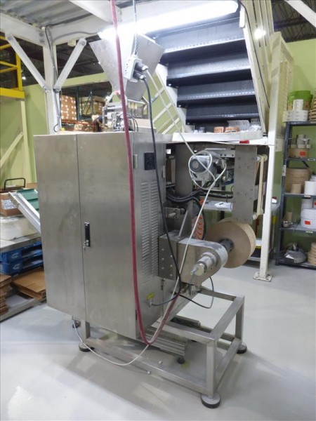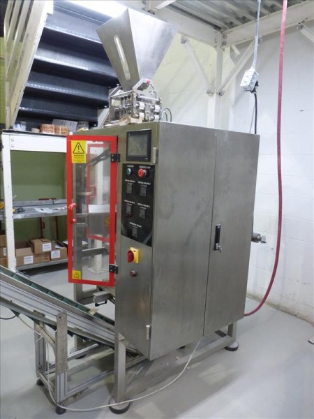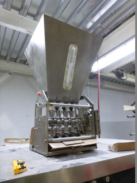 (2015) 4 Lane Automatic Granule Packing Machine set for 2 kg sugar bags, model DXDK-320, S/N 012493 with incline belt conveyor (Please note: unit does not include extended stainless steel frame at the bottom)